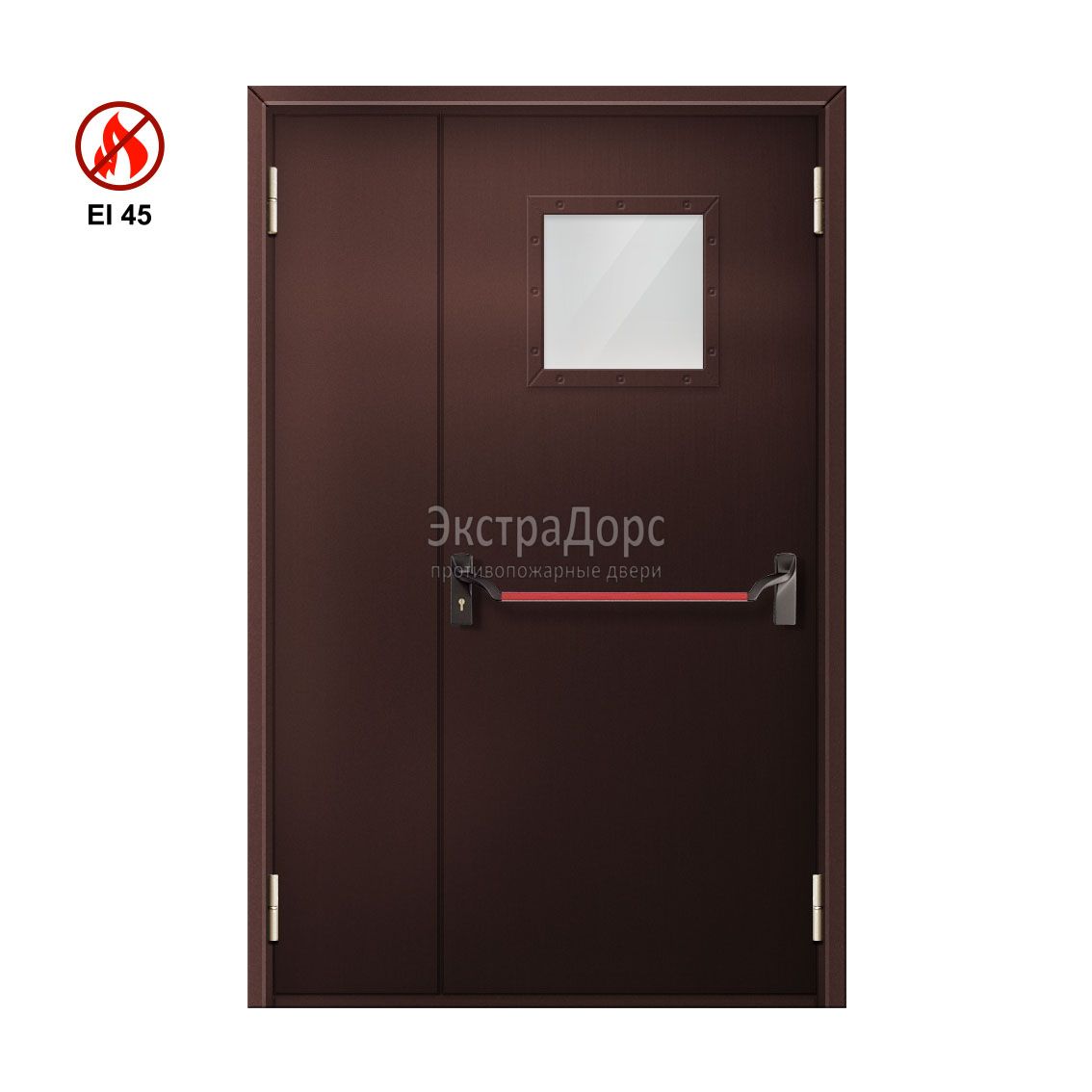 Двухстворчатая огнестойкая дверь EI 45 ДОП-02-EI45 ДП121 двупольная остекленная