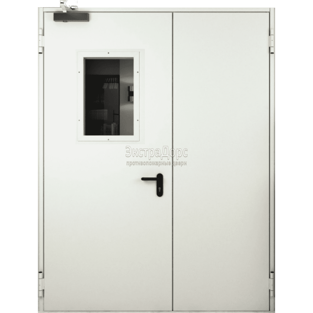 Двухстворчатая противопожарная дверь EIW 60 стальная с остеклением в Одинцово