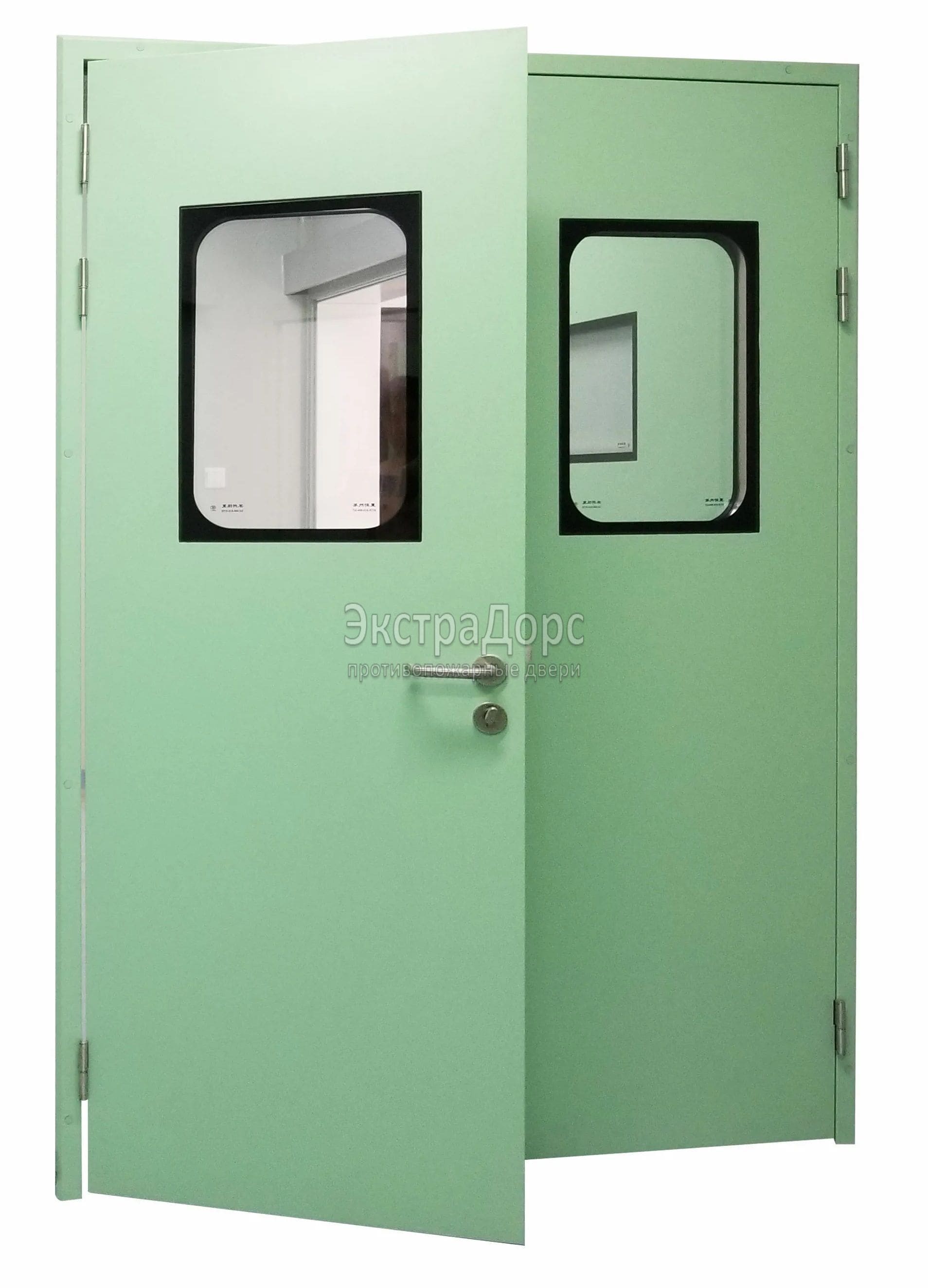 Двухстворчатая огнестойкая дверь EIW 60 зеленая со стеклом в Одинцово