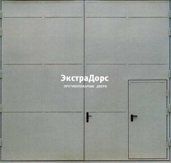 Противопожарные распашные серые ворота с калиткой в Одинцово