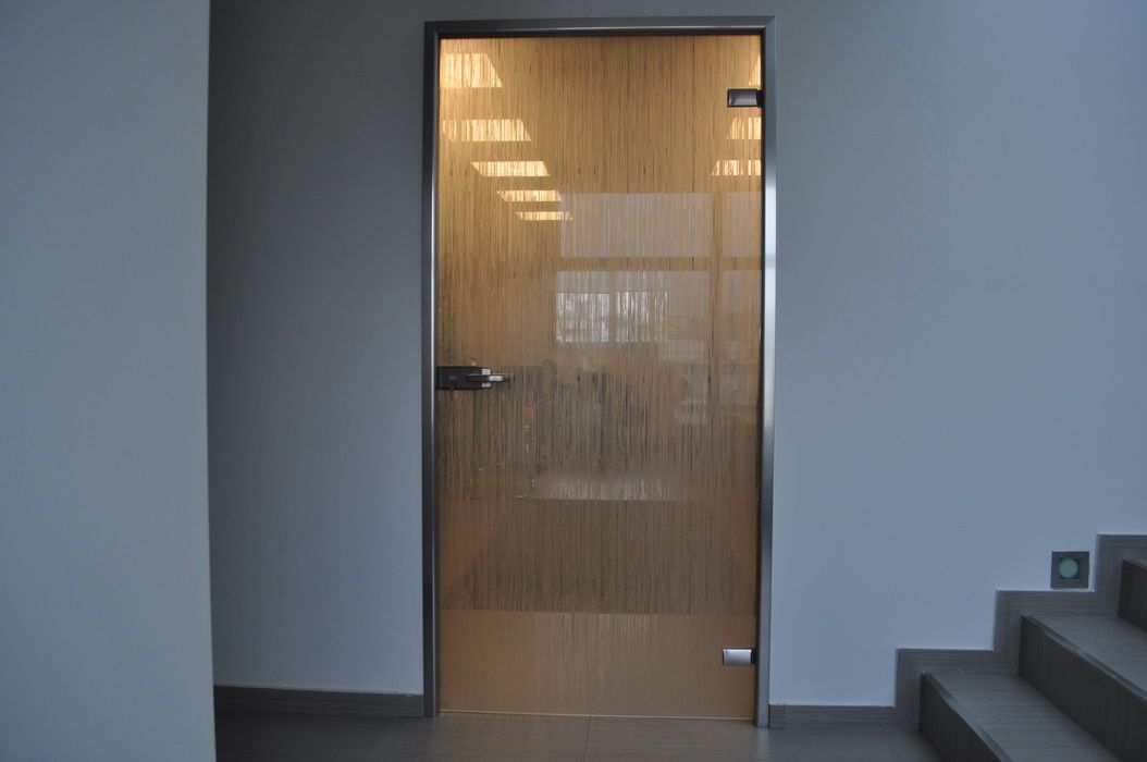 Противопожарная безрамная дверь со стеклом в БЦ в Одинцово